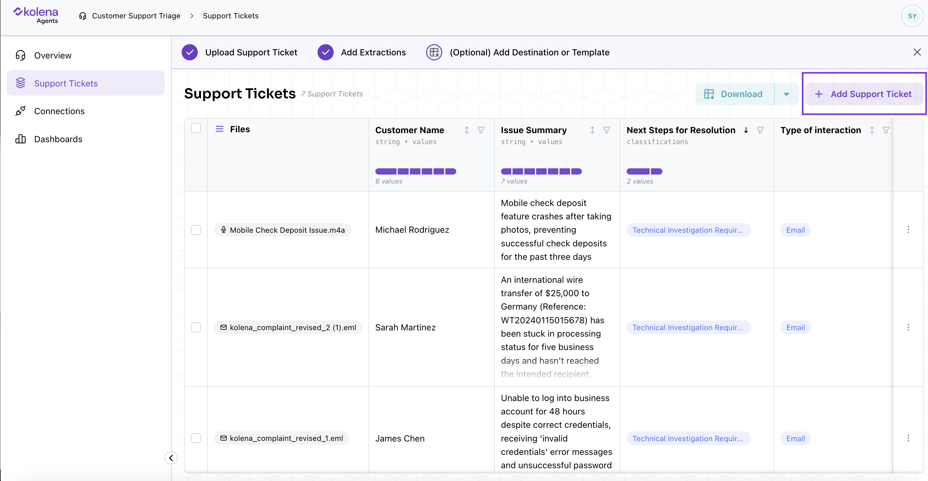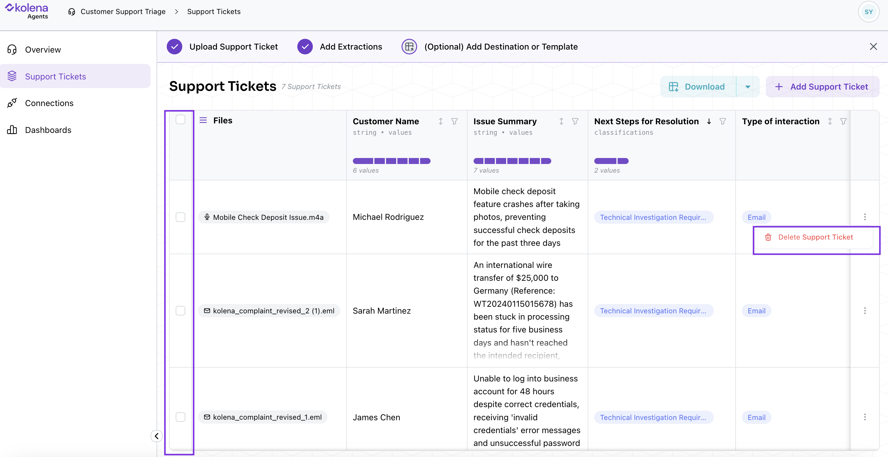 - Drag and drop additional support tickets