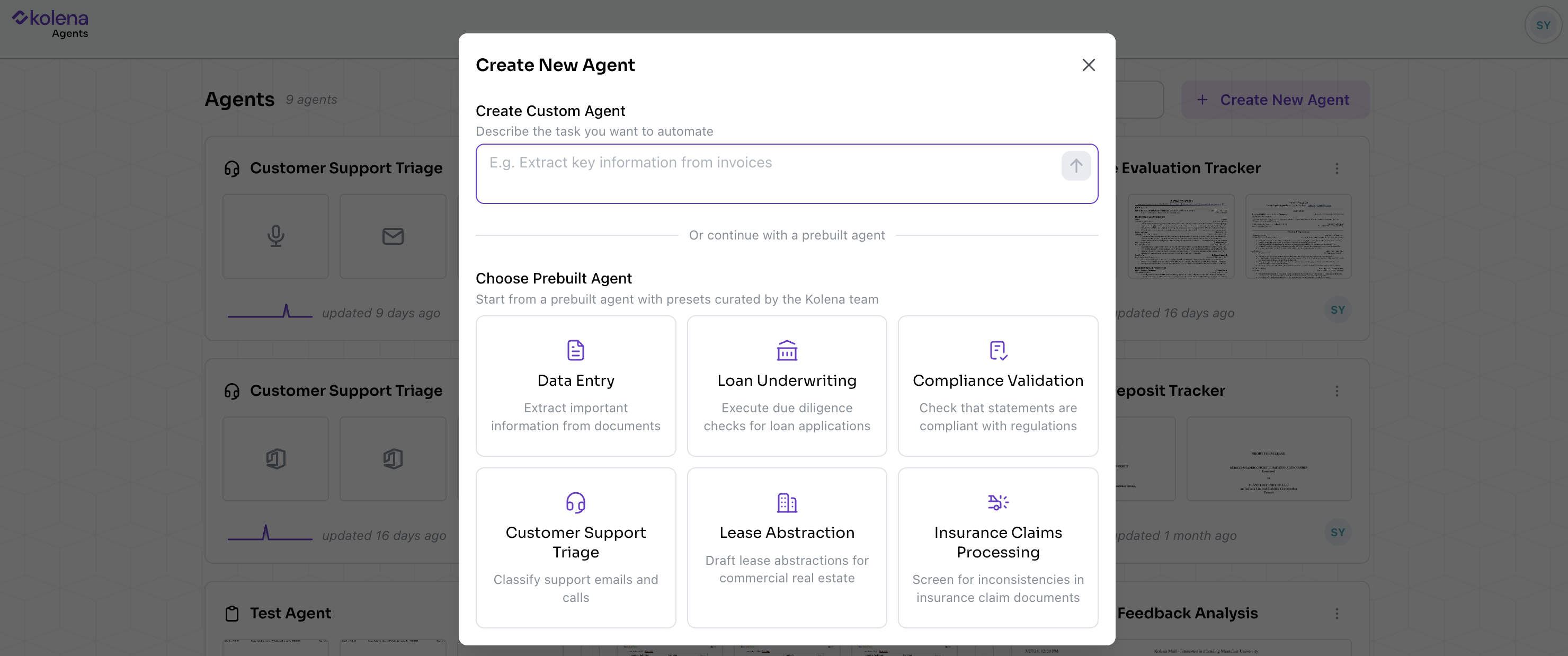 A Agent is an autonomous, intelligent assistant that helps you automate or enhance your processes. Agents work on your behalf to analyze documents, extract structured data, and generate insights, freeing you to focus on strategic tasks.Navigation Overview